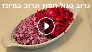 סלט כרוב סגול וכרוב לבן עם גזר מגורר ורוז פפר