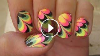 קישוטי ציפורניים בטכניקת מים לק Water Marble Nail Art
