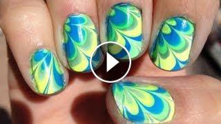 Water Marble Nail Art To Short Nails קישוטי ציפורניים לק ומים